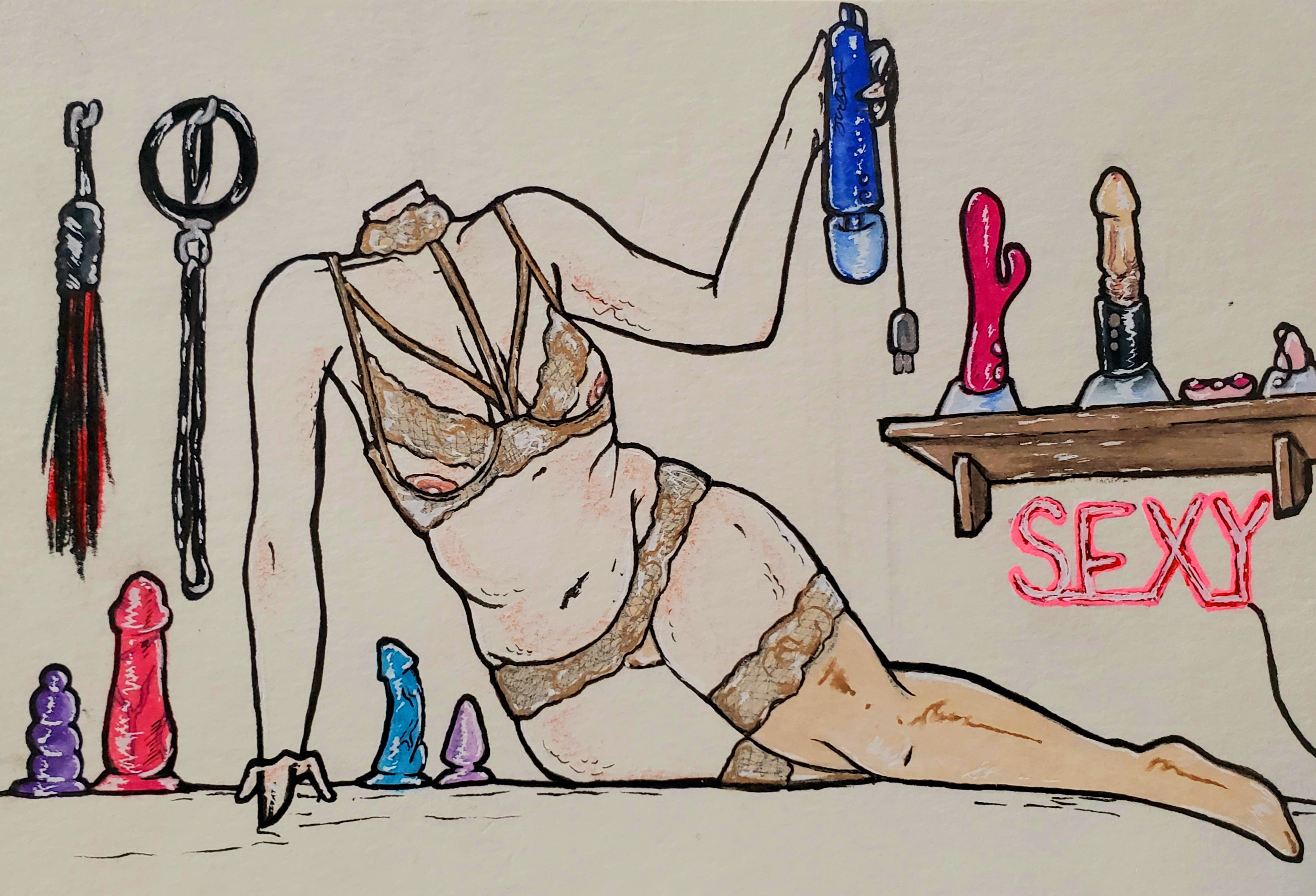 My standard work featuring real lingerie pieces and toys, with an emphasis on body diversity. Everyone deserves to feel sexy!
